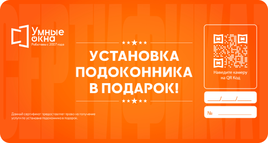 Бесплатная установка подоконника на одно окно. Можно выбрать при оформлении замера по акции «Выберите свой подарок».
